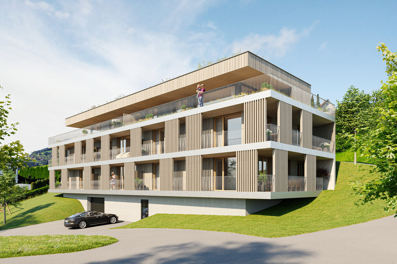 Die Anlage wird mit neuesten technischen Standards wie Photovoltaik, Wärmepumpe für Heiz- und Kühlbetrieb und der Vorbereitung für eine E-Ladestation für Autos ausgestattet. Besucherparkplätze und großzügige Fahrradstellplätze im Zugangsbereich sowie ein Kleinkinderspielpatz runden den Wohnkomfort ab.