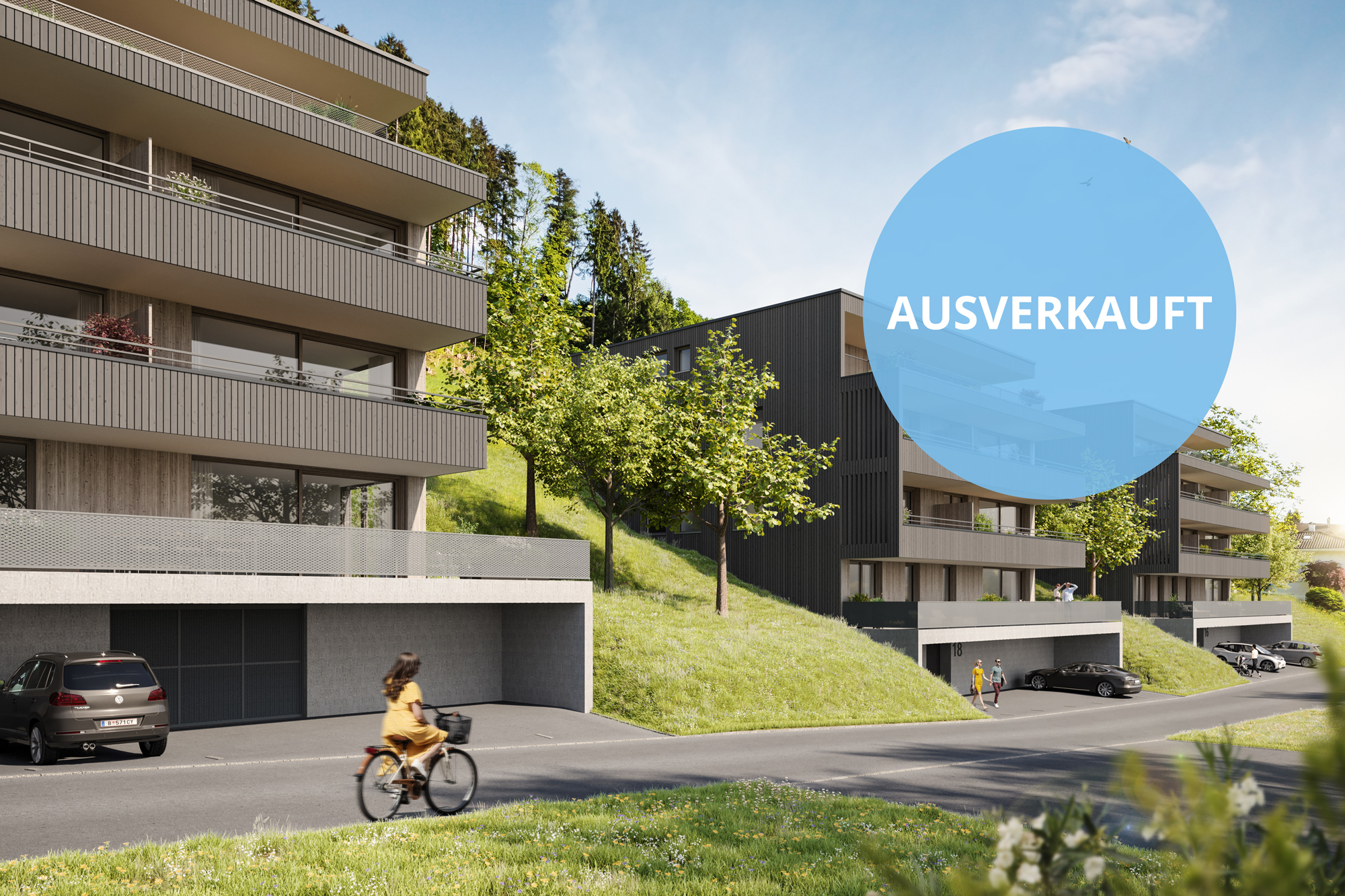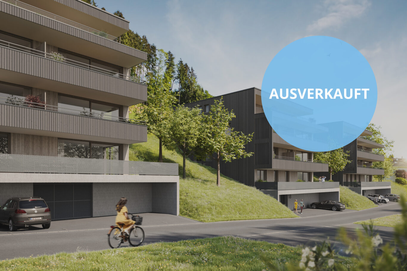 Moderne Holzfassaden, hochwertige Holz- bzw. Holz-Alufenster, EichendielenHolzfußboden und elegante Sanitäreinrichtung bieten ein hochwertiges Wohnerlebnis. Eine Tiefgarage auf Straßenniveau mit direktem Zugang zum Lift, zum Keller und zum Fahrradraum ermöglichen eine komfortable Erschließung aller Ebenen.
