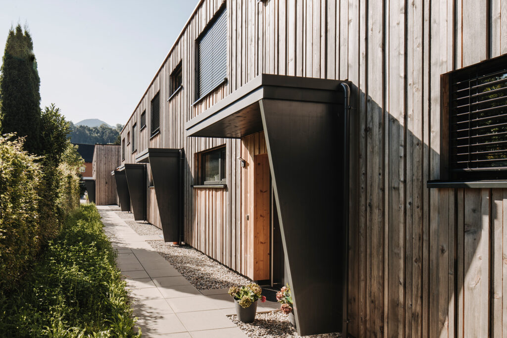 Moderne Holzfassaden, hochwertige Holz-Alufenster, Raffstore Beschattung, Eichendielen-Holzfußboden und elegante Sanitäreinrichtung. Tiefgarage mit zentralem Zugang zu den einzelnen Häusern, zum Keller und zum Fahrradraum. Die Anlage wird mit neuesten technischen Standards wie Photovoltaik, Luftwärmepumpe und der Vorbereitung für eine E-Ladestation für Autos ausgestattet. Besucherparkplätze und großzügige Fahrradstellplätze im Erdgeschoss sowie ein Kleinkinderspielpatz runden den Wohnkomfort ab.